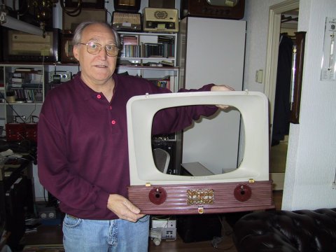 "Repareren van oude buizenapparatuur is het leukste dat er is" Een beeldbuis van papier en een kast van metaal Naast de dingen die hij verzamelt, is zijn hobby het repareren van oude buizenradio's en televisies. In zijn huis staan meerdere Duracell-konijntjes, zoals die in de televisiereclame te zien waren. "Ik verzamel verschillende dingen. Op dit moment zijn dat vooral microfoons. Meest uit de jaren vijftig. Daarnaast verzamel ik veel grammofoonplaten, maar ook beeldplaten. Die konijntjes heb ik ook een tijdje verzameld. Er zijn veel meer mensen die dat doen. Het repareren van buizenapparatuur vind ik momenteel het leukste. Ik heb ondertussen ook alle meetapparatuur daarvoor, zoals buizentesters en op zolder heb ik veel condensatoren liggen die voor de reparaties nodig zijn. Buizen worden niet meer gemaakt, behalve versterkerbuizen voor audio, dus alles moet uit oude voorraden of oude apparatuur komen. Ik vind het eigenlijk wel verbazend dat er wel nog steeds platenspelers worden gemaakt. Maar ja er worden ook nog steeds platen geperst."