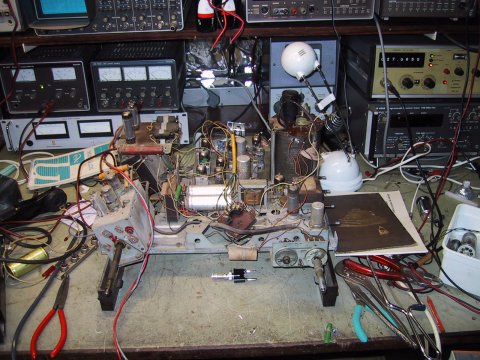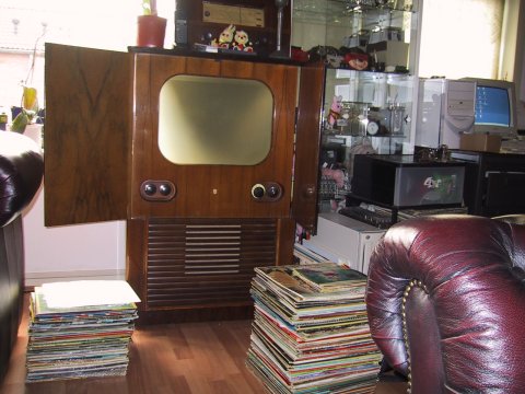 Een heel speciaal apparaat is een televisie met een (toen al) vlakke beeldbuis van papier uit de jaren vijftig. "Dit toestel is uit 1952, maar de eerste werd gemaakt in 1951. In die tijd konden ze nog geen beeldbuizen maken in deze grote afmeting. Daarom hebben ze een projectiescherm gemaakt, zoals je die tegenwoordig hebt met beeldkanonnen. Het beeld wordt vanaf een 6 cm grote beeldbuis geprojecteerd op het doorzichtige papier aan de voorzijde van het apparaat. Ik heb dit toestel nog niet gerestaureerd, en ik ben er ook een beetje voorzichtig mee. Ik ben door verschillende oudere mensen al gewaarschuwd dat ze uit krantenberichten weten dat het apparaat gevaarlijk is omdat hij zoveel röntgenstraling afgeeft. Dat komt waarschijnlijk vanwege de hoge spanning die voor zo'n krachtige kleine beeldbuis nodig is." Lody is niet goed met computers, maar toch heeft hij net een nieuwe aangeschaft. "Ze zijn wel erg handig omdat je tegenwoordig veel handboeken en lijsten met buizen op CD-ROM kunt krijgen." |