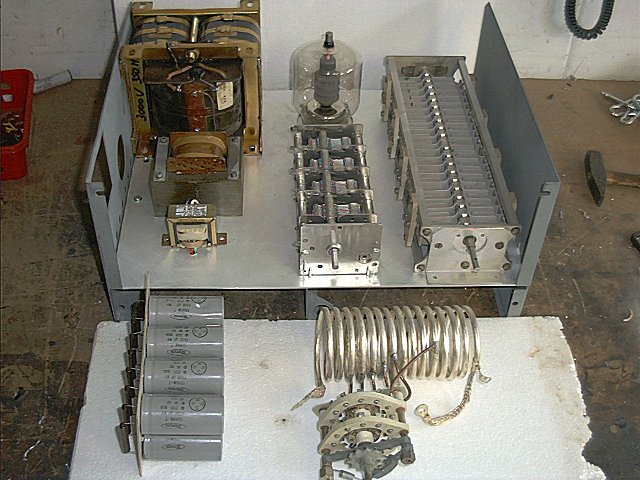 Zelfbouw: lineaire versterkers voor amateurgebruik Deel 2 - Printplaten en condensatoren In de vorige aflevering van deze serie zijn we gebleven bij de aanschaf van de kast. Voordat u uw soldeerlust bot gaat vieren op de componenten, is het zaak om eerst tot een goede plaatsbepaling te komen, op welke plek welke onderdelen in de kast, respectievelijk op het chassis moeten komen. Om dat te kunnen doen is het handig dat we eerst alle 'grote' onderdelen verzamelen of zelf maken. Onder de onderdelen die de grootte van de kast bepalen, vinden we als eerste natuurlijk de hoogspanningstransformator, en die hadden we al. Verder hoop ik dat u een keuze heeft kunnen maken uit de aangeboden buizentabel. Denk er wel om, dat bij iedere buis ook een buisvoet hoort. Deze kaneventueel ook zelf gemaakt worden, maar de beschrijving daarvan voert een beetje te ver voor dit artikel. Verder zijn de zogeheten 'loading'- en 'tuning'-condensatoren relatief grote componenten. Ook de gelijkrichterschakeling kan behoorlijke afmetingen aannemen. Als laatste noemen we het PI-filter en de gloeistroomtrafo. Op foto 1 ziet u een gedeelte van de componenten, los op het chassis gepaatst. Duidelijk te zien is dat de buis altijd zo dicht mogelijk bij de afstemcondensatoren moet staan, net als trouwens het PI-filter. Op foto 2 ziet u het PI-filter en de condensatoreenheid voor het chassis liggen. Deze onderdelen worden straks boven de gloeistroomtrafo en de loading- C geplaatst. We zullen alle getoonde onderdelen nu de revue laten passeren zodat u voldoende tips krijgt en inzicht in hoe een en ander gemaakt wordt en verkregen kan worden.