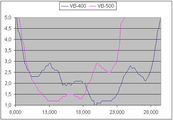 50 MHz. Voor de VB-500 komen de resultaten zelfs nog beter uit dan een halve golf dipool voor de |